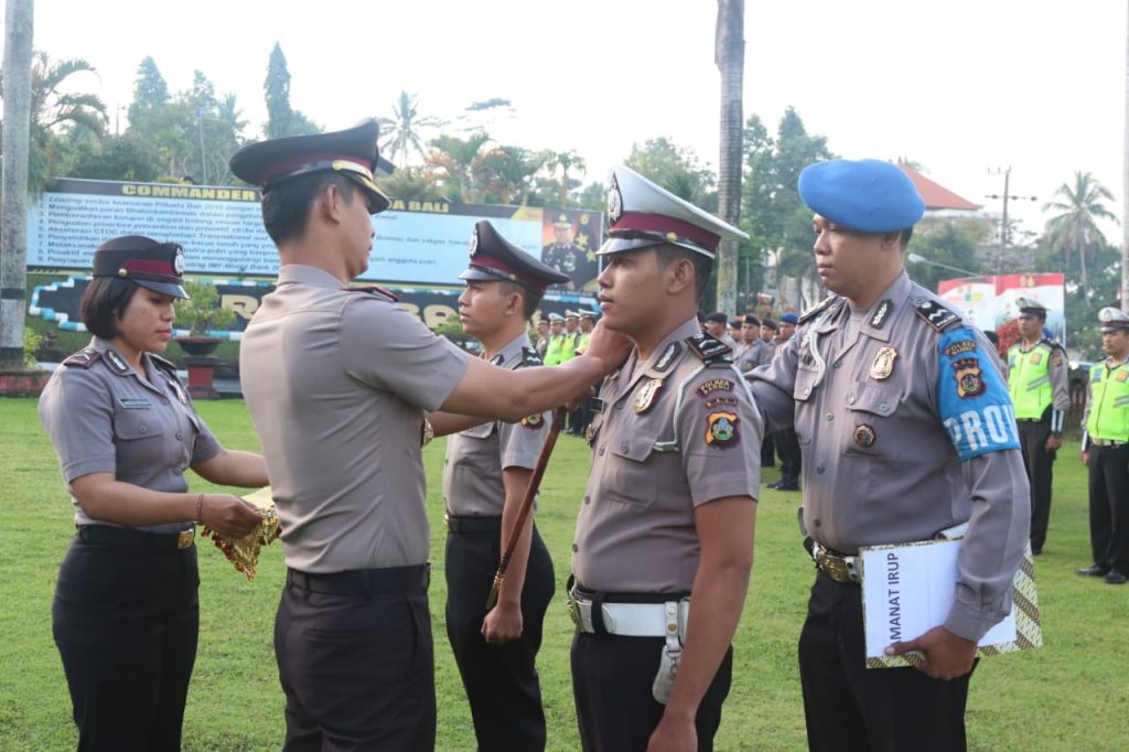 DENPASAR – Sebanyak 21 personel jajaran Polres Bangli mendapat kenaikan pangkat setingkat lebih tinggi, tiga orang diantaranya melaksanakan upacara kenaikan pangkat di Mapolda Bali, sedangkan 18 orang lainnya dilantik langsung oleh Kapolres Bangli AKBP Agus Tri Waluyo, S.I.K.,M.H di Lapangan Apel Polres Bangli, Senin (2/7/2018).