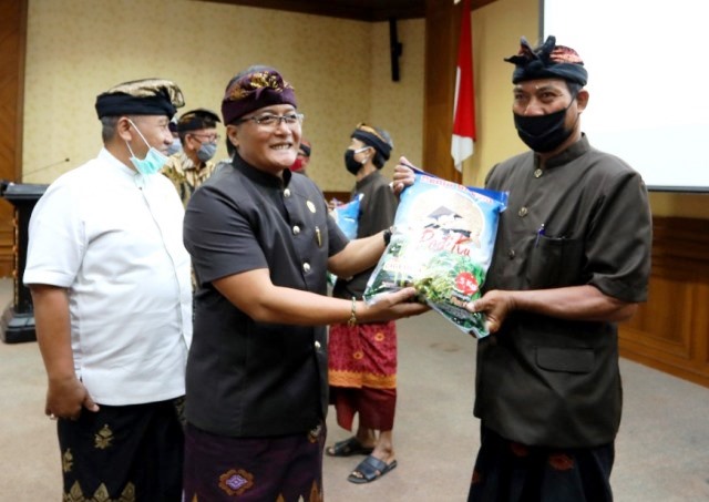 Bantuan benih Padi Inbrida dan bibit sayur diserahkan secara simbolis oleh Bupati Badung I Nyoman Giri Prasta didampingi Ketua DPRD Badung Putu Parwata dan Wakil Bupati I Ketut Suiasa kepada para majelis alit perwakilan petani dari masing-masing kecamatan, perwakilan Kelompok Wanita Tani (KWT) Kabupaten Badung serta kepada kelompok tani Crew Jimbaran bertempat di Ruang Kerta Gosana Puspem Badung,Kamis (23/7).
