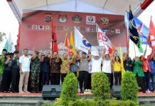 BeritaDewata.com, Denpasar - Polda Bali menggelar deklarasi Pemilu Damai bertempat di Monumen Perjuangan Bajrasandi Renon, Kamis (20/9).