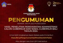 BERITA DEWATA - KPU Provinsi Bali Menerbitkan Pengumuman NOMOR : 1212 /PL.02.2-PU/51/2.1/2024 Terkait Hasil Penelitian Persyaratan Administrasi Calon Gubernur dan Wakil Gubernur Bali Tahun...