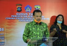 DENPASAR - Ketua Harian Gugus Tugas Percepatan Penanganan (GTPP) COVID-19 Provinsi Bali Dewa Made Indra menyampaikan perkembangan Penanganan Corona Virus Disease (COVID-19) di Provinsi...