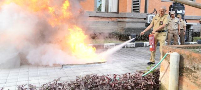 Kadisnaker dan ESDM Bali Ida Bagus Setiawan bertindak sebagai inspektur dalam apel tersebut. Peringatan Bulan K3 juga diisi dengan demo pemadaman kebakaran dengan media APAR (Alat Pemadam Api Ringan). Kadisnaker dan ESDM Bali Ida Bagus Setiawan dan sejumlah pegawai secara bergantian mempraktikkan cara pemadaman api dengan menggunakan APAR.