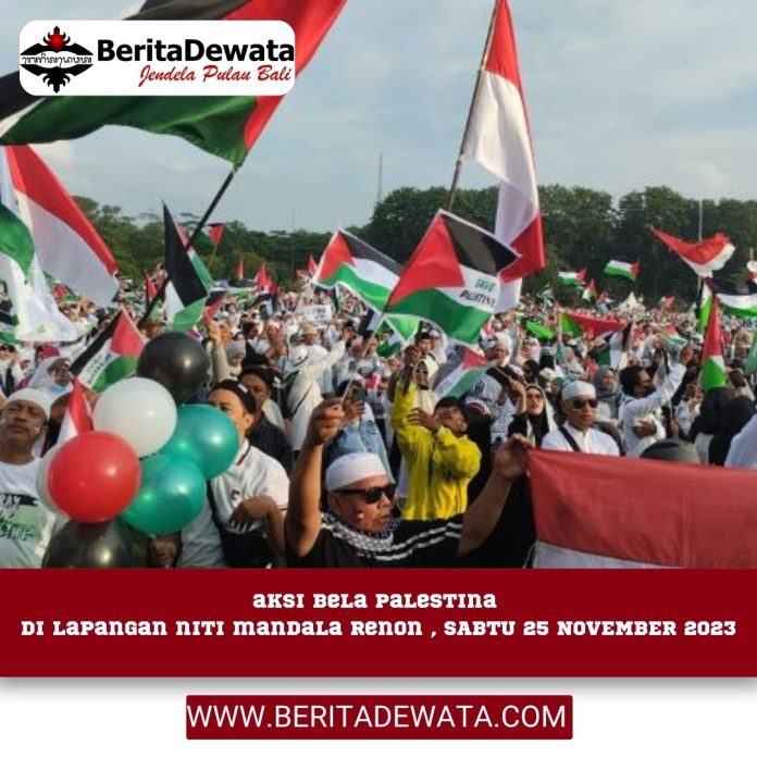 DENPASAR, BERITADEWATA – Aksi solidaritas kemanusiaan dari warga Muslim di Bali untuk Palestina sudah digelar di Lapangan Renon Denpasar pada Sabtu (25/11/2023). Aksi tersebut dihadiri oleh sekitar 10 ribu umat muslim dari berbagai penjuru di Bali, dari berbagai Ormas Islam yang ada di Bali.