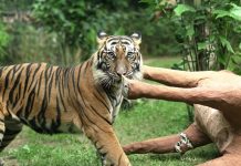 GIANYAR, BeritaDewata - Dalam rangka menyambut International Tiger Day, Bali Zoo memberikan special food dan physical enrichment khusus untuk satwa Harimau Sumatera (Panthera tigris...