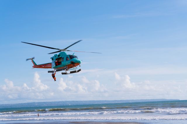 Simulasi tersebut melibatkan Helikopter Bell 412 milik SGI yang beroperasi dari area FINNS Beach Club, didukung satu unit jetski serta perahu karet milik Basarnas Bali.