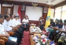 KLUNGKUNG, BeritaDewata - Bupati Klungkung, I Nyoman Suwirta menerima kunjungan Bupati Kabupaten Sijunjung, Sumatra Barat Yuswir Arifin di Praja Mandala Kantor Bupati Klungkung, Jumat...