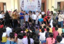 Klungkung - Ratusan anak-anak di posko pengungsian Gunung Agung yang ada di Gor Swecapura, Klungkung, Bali. Antusias mengikuti berbagai pertunjukan dan permainan yang disuguhkan...