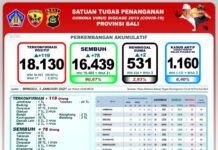 DENPASAR, BeritaDewata - Satuan Tugas Penanganan Covid-19 Provinsi Bali menyampaikan Perkembangan Pandemi Covid-19 di Provinsi Bali per hari ini, Senin (04/01/2021) mencatat pertambahan kasus...
