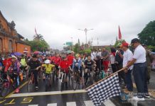 KLUNGKUNG, BERITADEWATA - Penjabat (Pj) Bupati Klungkung, I Nyoman Jendrika melepas puluhan peserta Fun Bike di depan Alun-Alun Dewa Agung Jambe, Kabupaten Klungkung, Minggu...