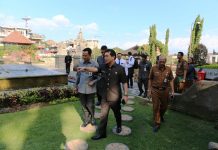 KLUNGKUNG, BeritaDewata - Bupati Klungkung I Nyoman Suwirta melakukan pengamatan lapangan penggunaan aplikasi e-ticketing pada loket masuk objek wisata Kerta Gosa ,Senin (22/7).