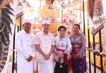 KLUNGKUNG, Berita Dewata - Bupati Klungkung I Nyoman Suwirta didampingi Ny Ayu Suwirta menghadiri prosesi Penganyar Upacara Yadnya Tawur Wraspati Kalpa, Padudusan, Ngenteg Linggih,...