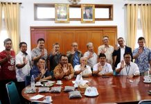 KLUNGKUNG, BeritaDewata - Bupati Klungkung, I Nyoman Suwirta menerima kunjungan Bupati Kabupaten Sijunjung, Sumatra Barat Yuswir Arifin di Praja Mandala Kantor Bupati Klungkung, Jumat...