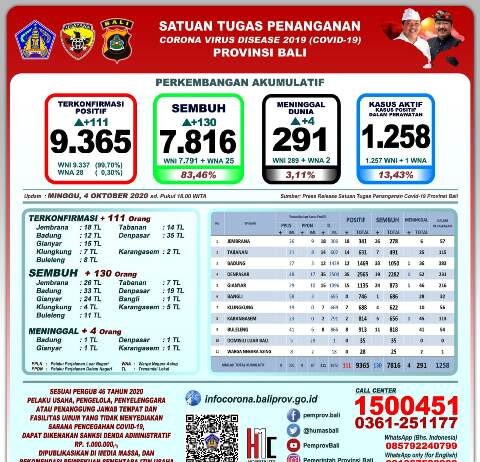 DENPASAR, Berita Dewata - Pemerintah Provinsi Bali, melalui Gugus Tugas Percepatan Penanganan COVID-19, mengungkapkan perkembangan Penanganan Corona Virus Disease (COVID-19) di Provinsi Bali yang...