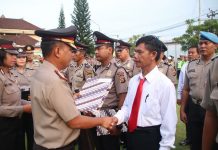 DENPASAR - Polresta Denpasar melaksanakan Upacara Hari Kesadaran Nasional dan dikaitkan dengan pemberian ucapan terimakasih terhadap personil yang melaksanakan tugas dengan baik.