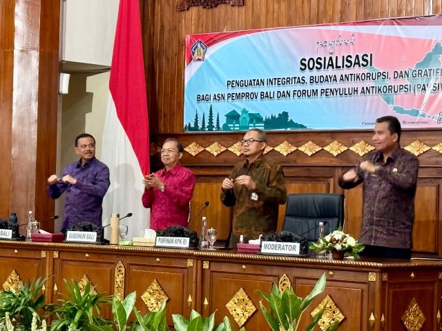 Hal ini disampaikan dalam acara Sosialisasi Penguatan Integritas, Budaya Antikorupsi, dan Gratifikasi bagi ASN Pemprov Bali dan Forum Penyuluh Antikorupsi (PAKSI) Provinsi Bali di Gedung Wiswa Sabha Utama, Kantor Gubernur Bali, Senin (4/11/2025).