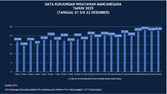PT Angkasa Pura selaku pengelola Bandara I Gusti Ngurah Rai merilis data resmi pada Rabu (24/12/2025) menjelang perayaan Natal dan Tahun Baru. Data tersebut selaras dengan catatan BPS terkait pergerakan wisatawan ke Pulau Dewata.