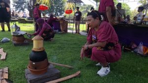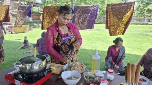 Dalam foto terlihat para peserta tengah mengolah hidangan tradisional di area lomba, menggunakan bahan-bahan lokal yang merepresentasikan ketahanan keluarga sekaligus potensi ekonomi daerah. Setiap masakan tidak hanya dinilai dari cita rasa, tetapi juga dari cerita di balik proses usaha yang dijalani para Ibu Mitra.