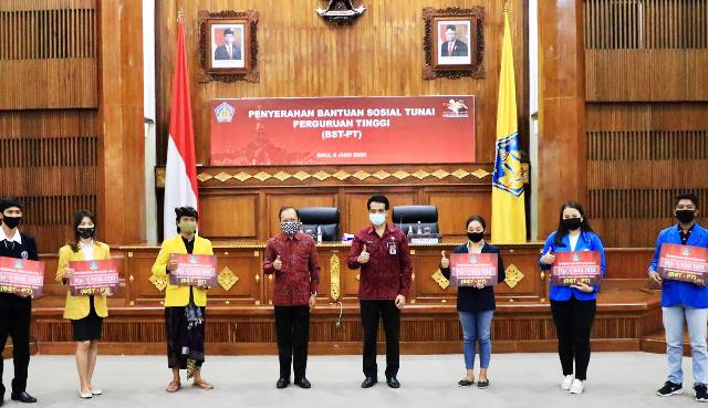 Luar Biasa, Gubernur Koster Serahkan BST Kepada Mahasiswa se-Bali Terdampak COVID-19