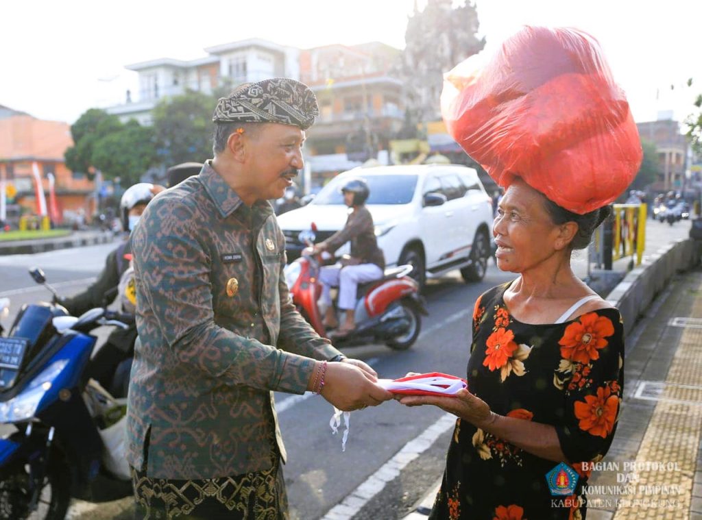 KLUNGKUNG, BERITADEWATA – Pemerintah Kabupaten Klungkung membagikan sebanyak 500 bendera merah putih di depan Monumen Ida Dewa Agung Jambe, Kamis (8/8). Kegiatan yang dipimpin langsung Penjabat Bupati Klungkung I Nyoman Jendrika ini dalam rangka memeriahkan HUT Kemerdekaan Republik Indonesia ke-79.