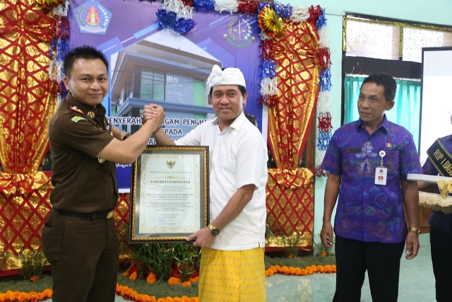 Klungkung – Pemerintah Kabupaten Klungkung memberi apresiasi kepada Tim Pengawalan dan Pengamanan Pemerintah dan Pembangunan Daerah (TP4D) Kejaksaan Negeri Klungkung. Apresiasi dalam bentuk piagam penghargaan diserahkan Bupati Klungkung, I Nyoman Suwirta kepada Kepala Kejaksaan Negeri Klungkung, Otto Sompotan, SH.,MH di Aula RSUD Klungkung, Selasa (29/1).