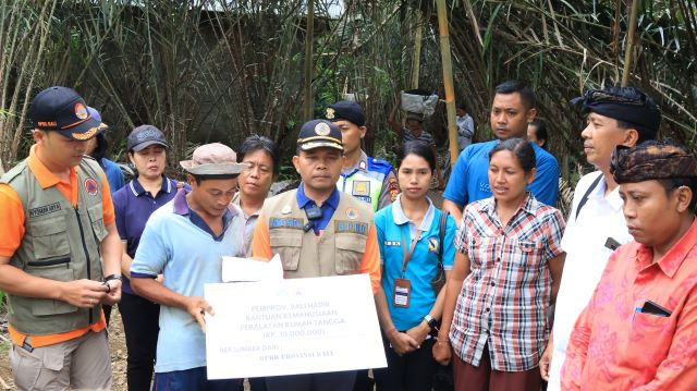 Bantuan berupa uang tunai senilai Rp. 10.000.000,- (sepuluh juta rupiah) diserahkan langsung oleh Kepala Pelaksana Badan Penanggulangan Bencana Daerah (BPBD) Bali I Made Rentin kepada warga kurang mampu I Nyoman Daging, seorang buruh serabutan yang penghasilan sehari-harinya tidak menentu.