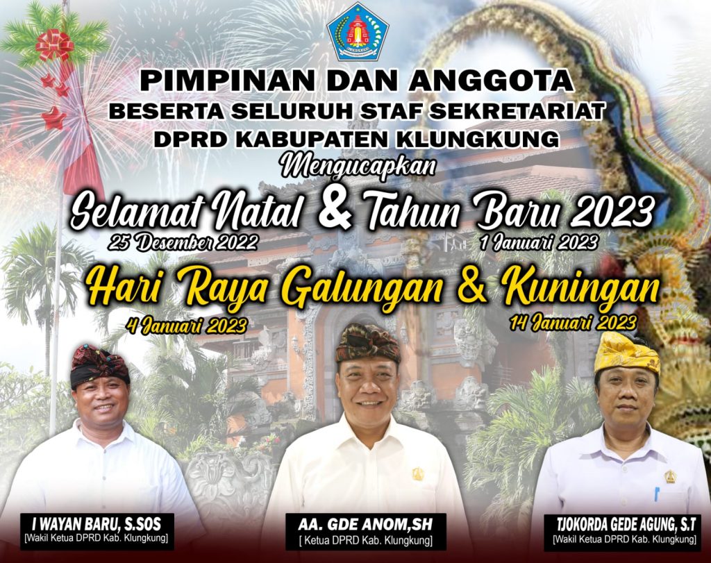 Pimpinan dan Anggota Beserta Seluruh Staf Sekretariat DPRD Kabupaten Klungkung Mengucapkan Selamat Natal 2022 & Tahun Baru 2023 Berita Dewata 3 tahun ago Sebarkan Berita ini