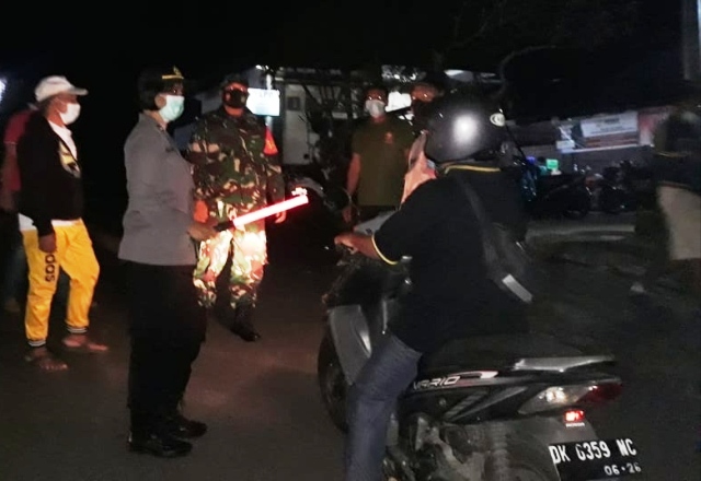 KLUNGKUNG, BeritaDewata – Polres Klungkung bersama dengan Satgas Covid-19 yang ada di desa melaksanakan kegiatan pembatasan mobilitas masyarakat, Sabtu malam (17/07/2021).