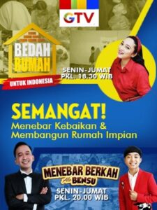 Saksikan episode terbaru di GTV mulai 19 Oktober 2020 : Bedah Rumah Untuk Indonesia, tayang setiap hari Senin hingga Jumat pukul 18.30 WIB dan Menebar Berkah Ala Bensu, tayang setiap hari Senin hingga Jumat pukul 20.00 WIB. Tonton acaranya, rasakan semangatnya!