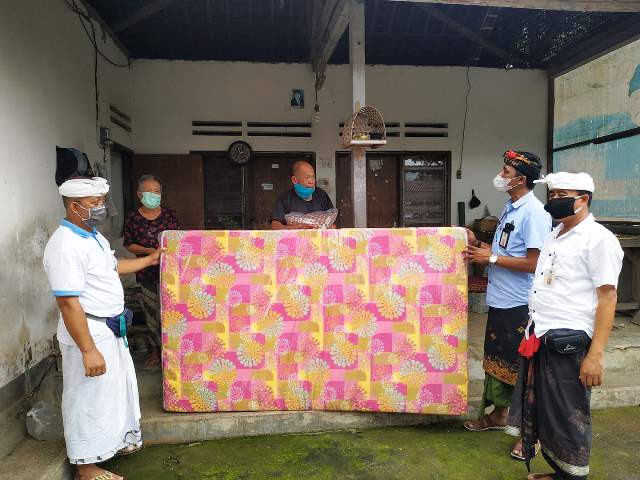Sumidra, salah satu KK miskin ini tinggal bertiga dalam satu rumah bersama dua saudara perempuannya yang juga lansia. “Terimakasih atas perhatian dan bantuan Bapak Bupati Klungkung,” ujarnya singkat saat menerima bantuan kasur dan bantal dari Bupati Suwirta yang diserahkan Lurah Semarapura Kaja, Wayan Astawa.