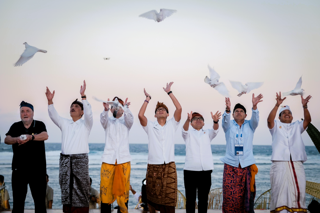 DENPASAR, BERITADEWATA – Gelaran Konferensi World Water Forum (WWF) ke-10 dimulai dengan upacara water purification atau upacara pemurnian air yang dimulai di Kura-Kura Bali, Pantai Serangan, Kota Denpasar.