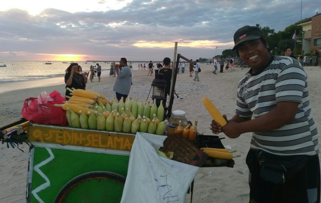 Adi, menjajakan jagung bakar di tengah keramaian wisatawan Pantai Kelan, mulai pukul 16:00Wita, Jagung bakar Adi ternyata diminati wisatawan, terbukti dari pantauan dilapangan, pengunjung yang didominasi wisatawan asal Tiongkok, satu persatu mereka memesan jagung Bakar Adi.
